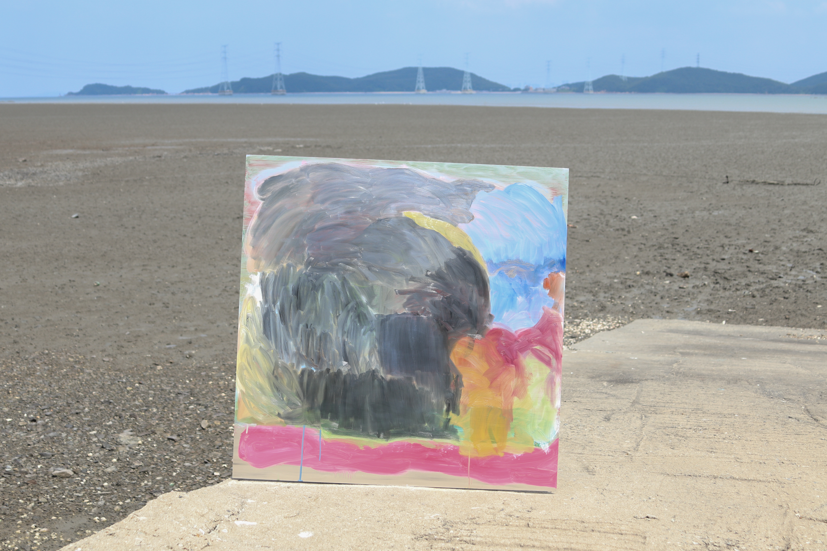 tongue is mine (혀는 내 거다 in Korean) is a series of works made during the summer of 2024. The series consists of three works on a 80cm x 120cm aluminum panel, three works on a 80cm x 80cm aluminum panel, and two works on a 50cm x 50cm streched canvas. All works were produced in my shared studio space in Sillim, Seoul, South Korea. All photos were taken at Seonjaedo Island, Incheon, South Korea.
